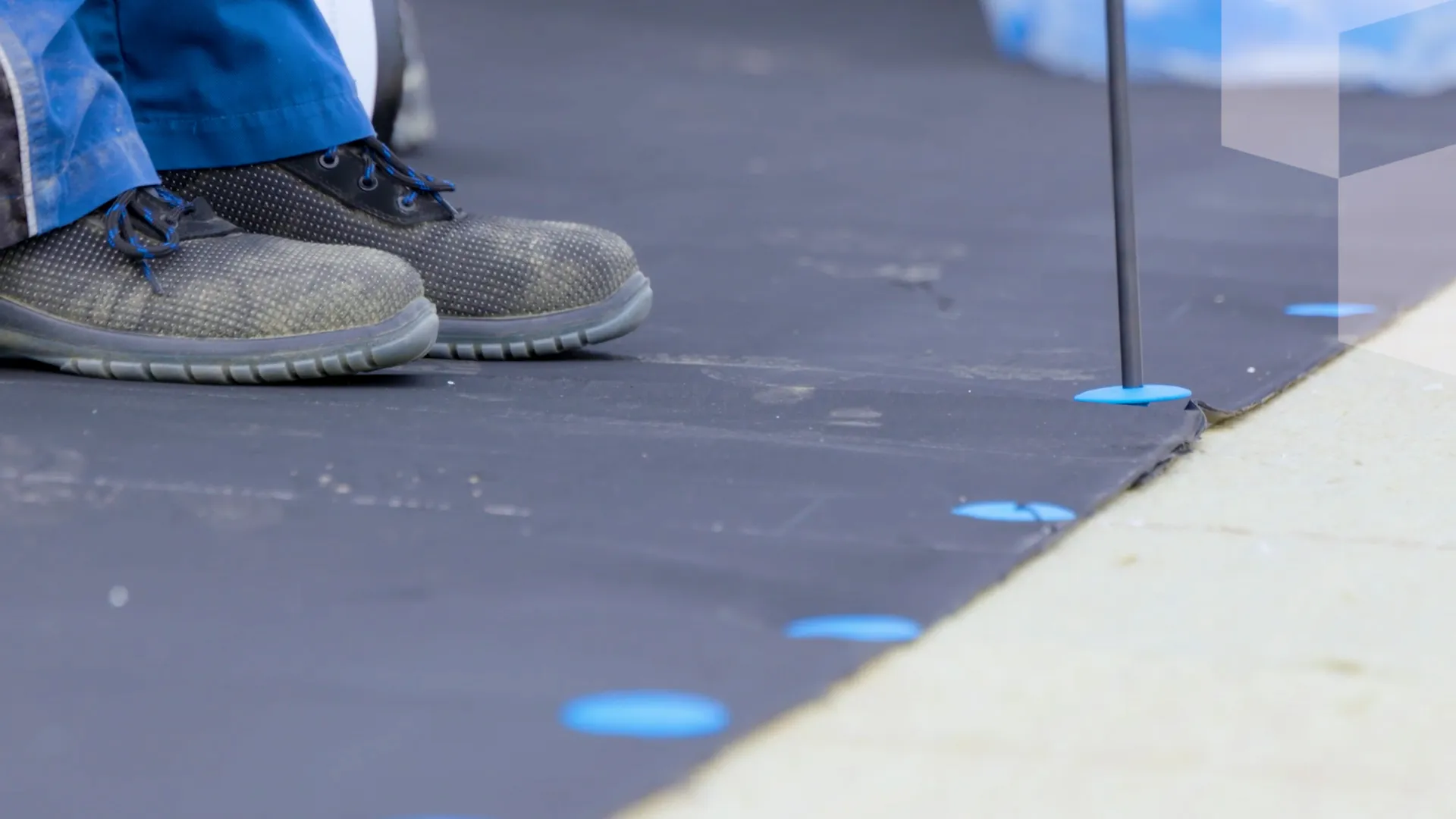 After unrolling the roof membrane, it can be secured immediately, without being overly dependent on weather conditions such as wind or rain. This makes mechanical fastening a particularly efficient method for large industrial roofs. In addition, this technique offers significant ergonomic advantages: thanks to the use of screw and bit extensions, roofers can work in an upright position, which significantly reduces physical strain.