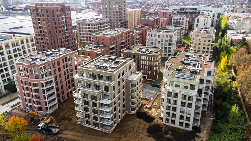 In the prestigious redevelopment of Tour & Taxis in Brussels, MBG is realizing the sustainable and future-oriented residential project Parklane 2. This second phase of the Parklane district comprises 11 buildings with a total of 346 high-quality apartments, situated around two green courtyards covering more than 2 hectares of garden area. The project combines contemporary architectural design with an emphasis on quality of life, greenery, mobility, and sustainability in a car-free residential environment close to the Tour & Taxis park.